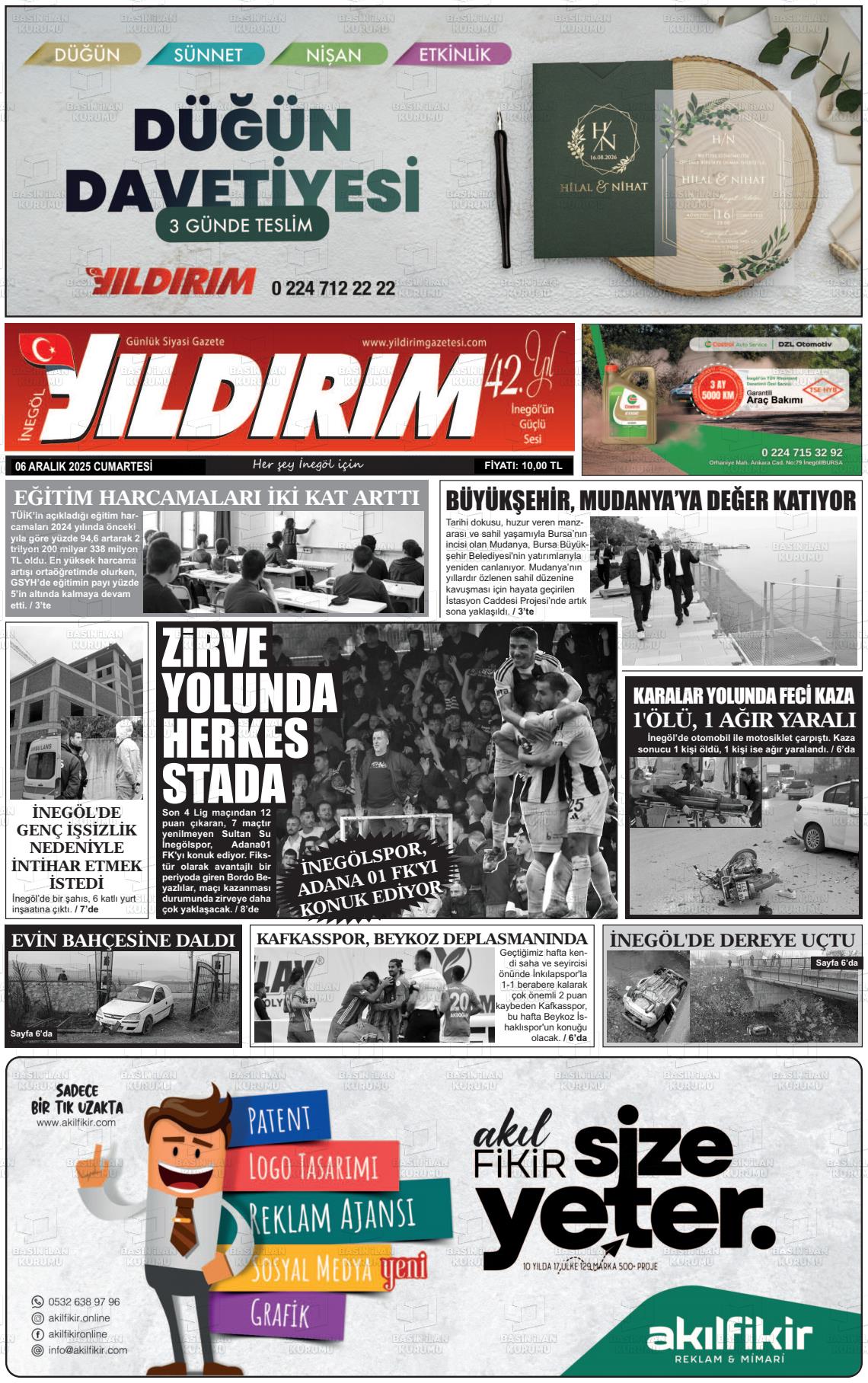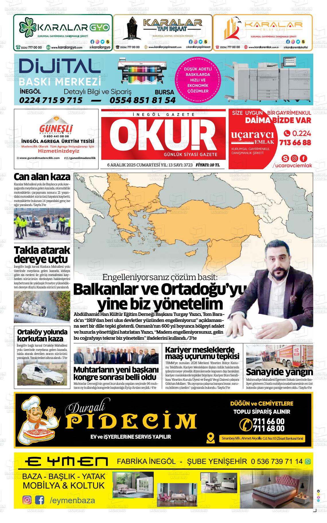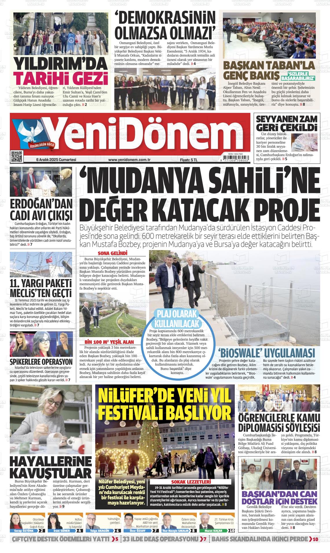 Bursa Yerel Gazeteleri 06 Aralık 2025, Cumartesi Günü Manşeti