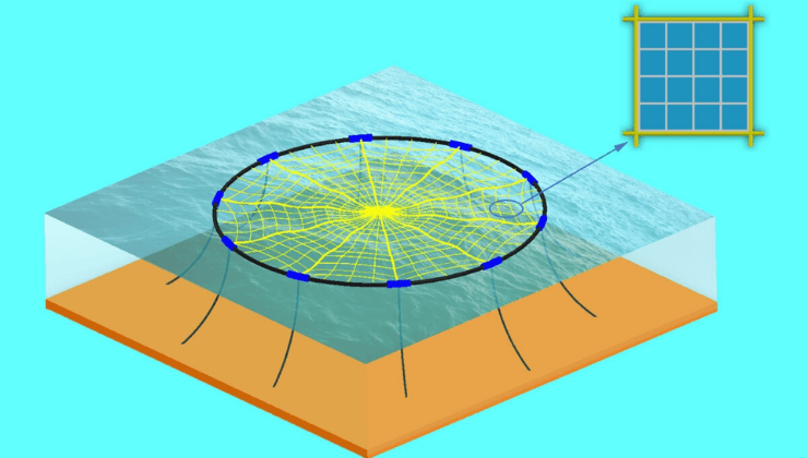 Söz konusu sistem, dalgaların oluşturduğu hareketleri esnek bir örgü biçiminde yönlendirerek panellerin maruz kalabileceği zararlı baskıları minimize ediyor. Yapının “örümcek ağı” benzeri ip-örgüleri spiral ve radyal düzen bağıyla hem dayanıklılığı artırıyor hem de kurulum esnekliği sağlıyor.